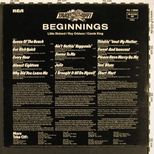 | V5972 | LP | V.A.Beginnings-Take Off!: Little Richard, Orbison, CaroleKing, RCA(26.21725 AE), D, m-/vg+, 1976, p1 p2 p3 p4 | 4,00 Euro |