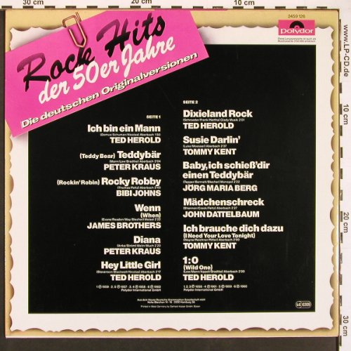 | V6082 | LP | V.A.Rock Hits der 50er Jahre: Ted Herold, Peter Kraus... 12 Tr., Polydor(2459 126), D, p1 p2 p3 | 4,00 Euro |