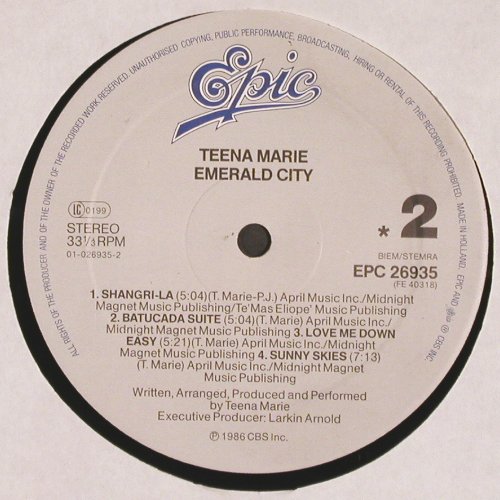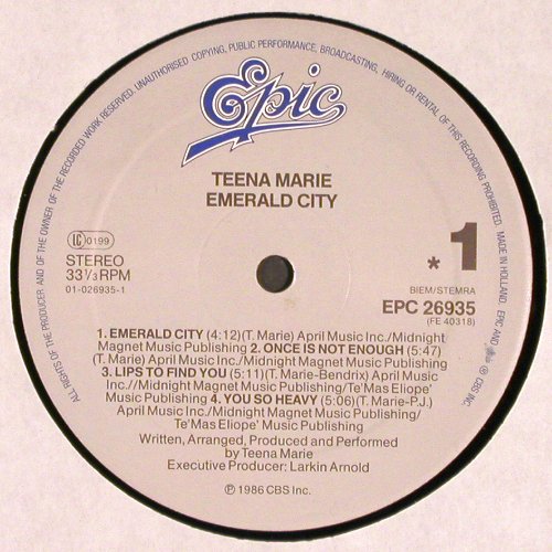 | V6314 | LP | Marie,Teena: Emerald City, Epic(EPC 26935), NL, 1986, p1 p2 p3 p4 | 6,00 Euro |