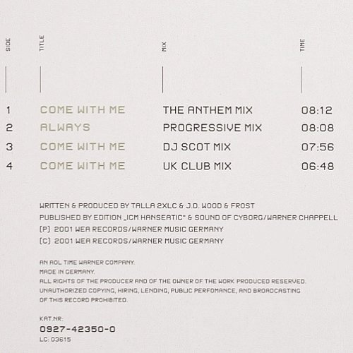 | V6140 | 12"*2 | Talla 2XLC: Come with me / Always, WEA(0927-42350-2), D, 2001, p1 p2 p3 | 9,00 Euro |