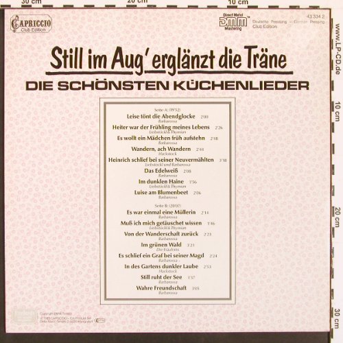 V5829 | LP | V.A.Still im Aug' erglänzt d. Träne: Die schönsten Küchenlieder, Capriccio(43 334 2), D, DSC, 1985, p1 p2 p3 | 5,00 Euro |