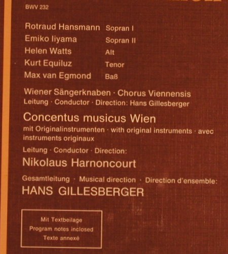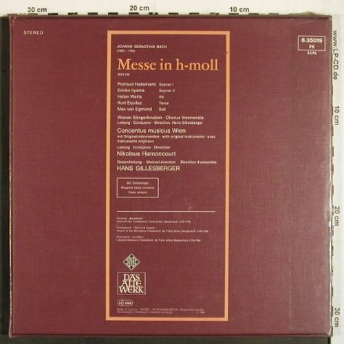 | K1543 | 3LP | Bach,Johann Sebastian: Messe In H-Moll, Box,FS-New,sealed, Telefunken(6.35019 FK), D, Ri, p1 p2 p3 p4 • Wiener Sängerknaben, Concentus Musicus Wien, Hans Gillesberger / Nikolaus Harnoncourt. rec 1966. | 25,00 Euro |