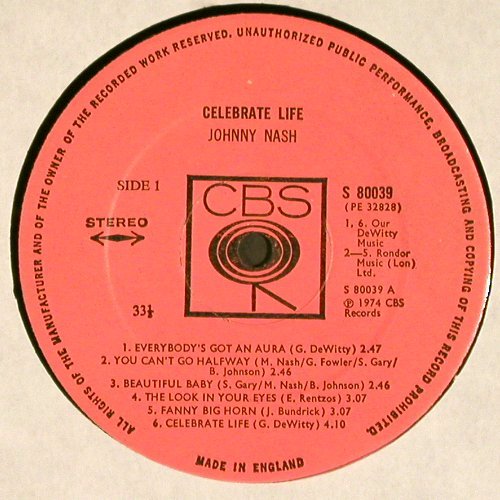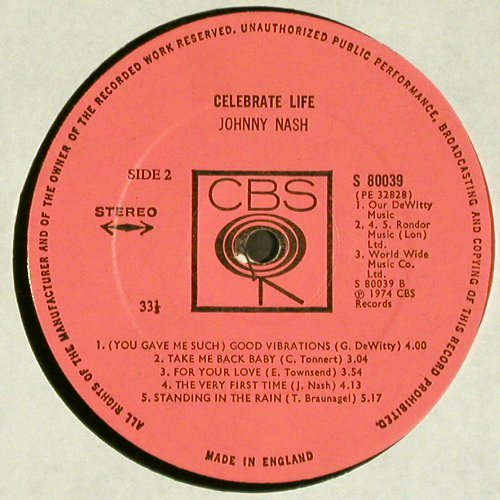 V5270 | LP | Nash,Johnny: Celebrate Life, CBS(CBS 80039), UK, 1974, p1 p2 p3 p4 | 7,50 Euro |