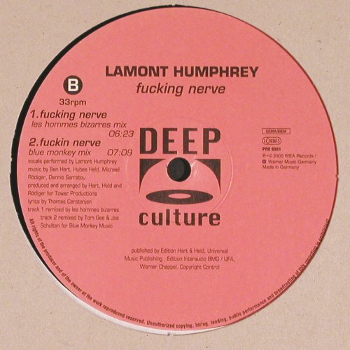 | V6230 | 12" | Humphrey,Lamont: Fucking Nerve*4, Deep Culture(PRO 6561), D, 2000, p1 p2 p3 | 7,50 Euro |