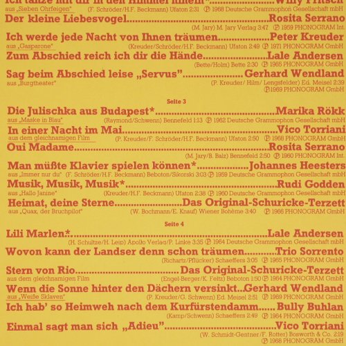 V896 | LP | V.A.1000 Takte Tonfilm: Das Waren noch Zeiten 1947-59, Polydor(2459 028), D, Ri, 1974, p1 p2 p3 p4 p5 | 9,00 Euro |