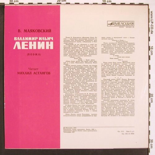 | V6177 | LP | Vladimir Ilyich Lenin: Mikhail Astangov Narrates '62, Melodia - spoken rus.(010645-46), UDSSR, 1976, p1 p2 p3 | 7,50 Euro |