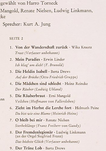 V5780 | LP | V.A.Still im Aug' erglänzt d. Träne: Lieder die zu Herzen gehen, Telefunken Schall Rauch(STSC 13 441), D, 1965, p1 p2 p3 p4 | 9,00 Euro |