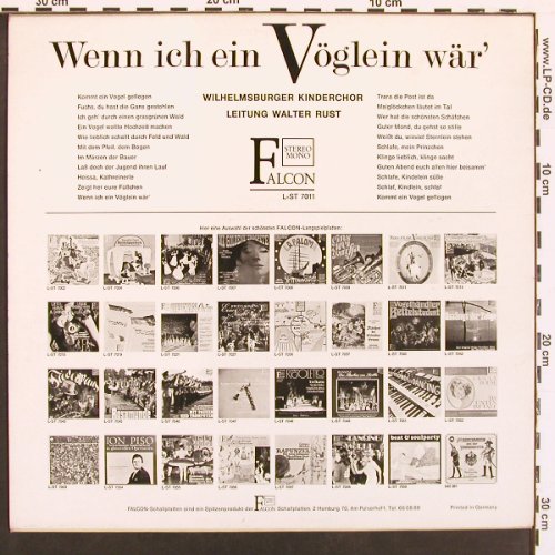 V5819 | LP | Wilhelmsburger Kinderchor: Wenn ich ein Vöglein wär', W.Rust, Falcon(L-ST 7011), D, p1 p2 p3 | 6,00 Euro |